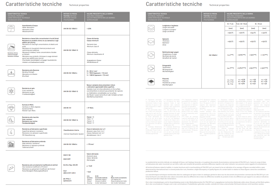 Prodotto rettificato, ingelivo ed idrorepellente.