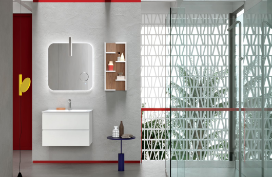 Mobile Bagno Sospeso Bianco opaco con Lavabo e Specchio illuminato | TETI.02 Disponibile da subito