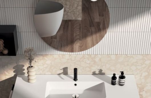 Composizione Lavabo Ecomalta Tortora sospeso con base effetto Legno Rovere Beige Disponibile da subito