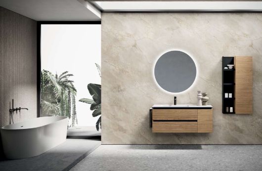 Mobile Bagno Sospeso Rovere Chiaro con Lavabo e Specchio LED | ONDINA.01 Disponibile da subito