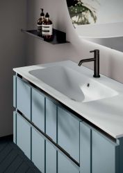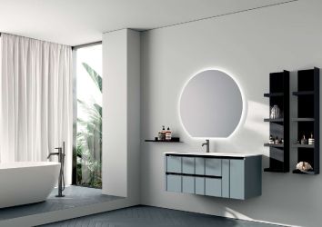Questa composizione bagno sospesa è pensata per chi cerca un arredo moderno, funzionale e curato nei dettagli. Le basi in finitura carta da zucchero, il lavabo in mineralmarmo con vasca sinistra e la specchiera retroilluminata creano un insieme elegante e ben organizzato. I pensili a giorno e la mensola in metallo nero completano l’arredo con praticità e carattere, mentre la possibilità di personalizzazione rende la composizione adatta a diverse esigenze di spazio.