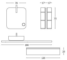 Pensile a giorno Dx verticale L.17 H.75 P.15 laccato carta da zucchero