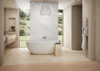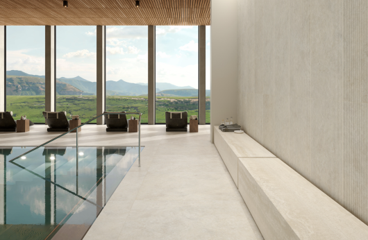 Pavimento e rivestimento in gres fine porcellanato Bianco Strutturato per esterni Naturale serie MYSTONE TIVOLI by Marazzi Disponibile da subito