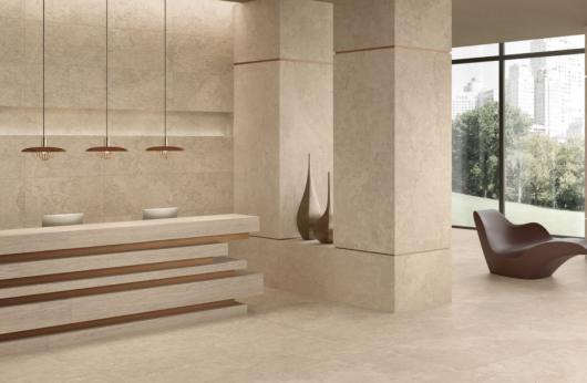 Pavimento e rivestimento in gres porcellanato Portland Stone Cross Cut Sand 20 mm by Ergon Disponibile da subito