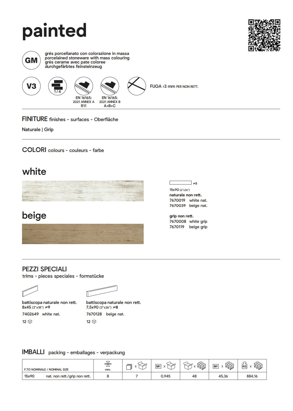 Pavimento in gres effetto legno serie PAINTED WHITE 15x90 cm R11 by Saime Disponibile da subito