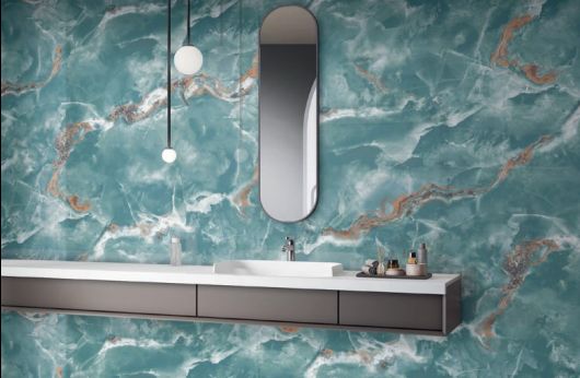 Pavimento in gres porcellanato levigato effetto Marmo Onice Blu by Bertolani Vena Continua Disponibile da subito