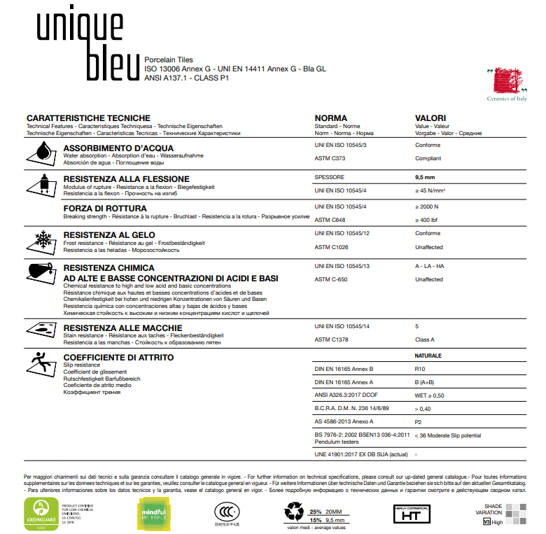 Pavimento e rivestimento in gres serie Unique Bleu.