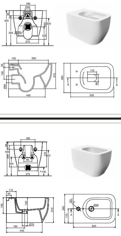 Sanitari bianchi lucidi sospesi serie TEA con coprivaso soft close